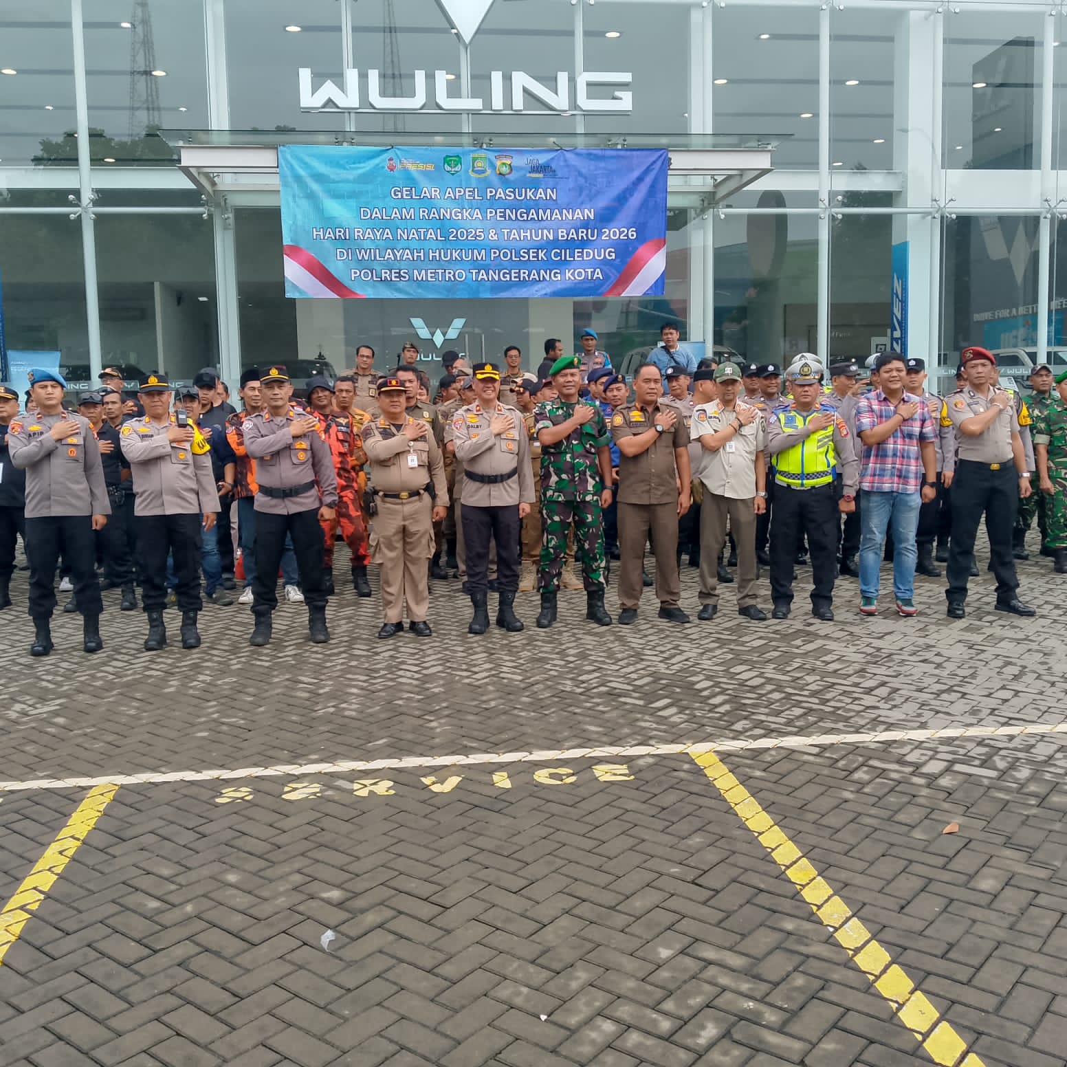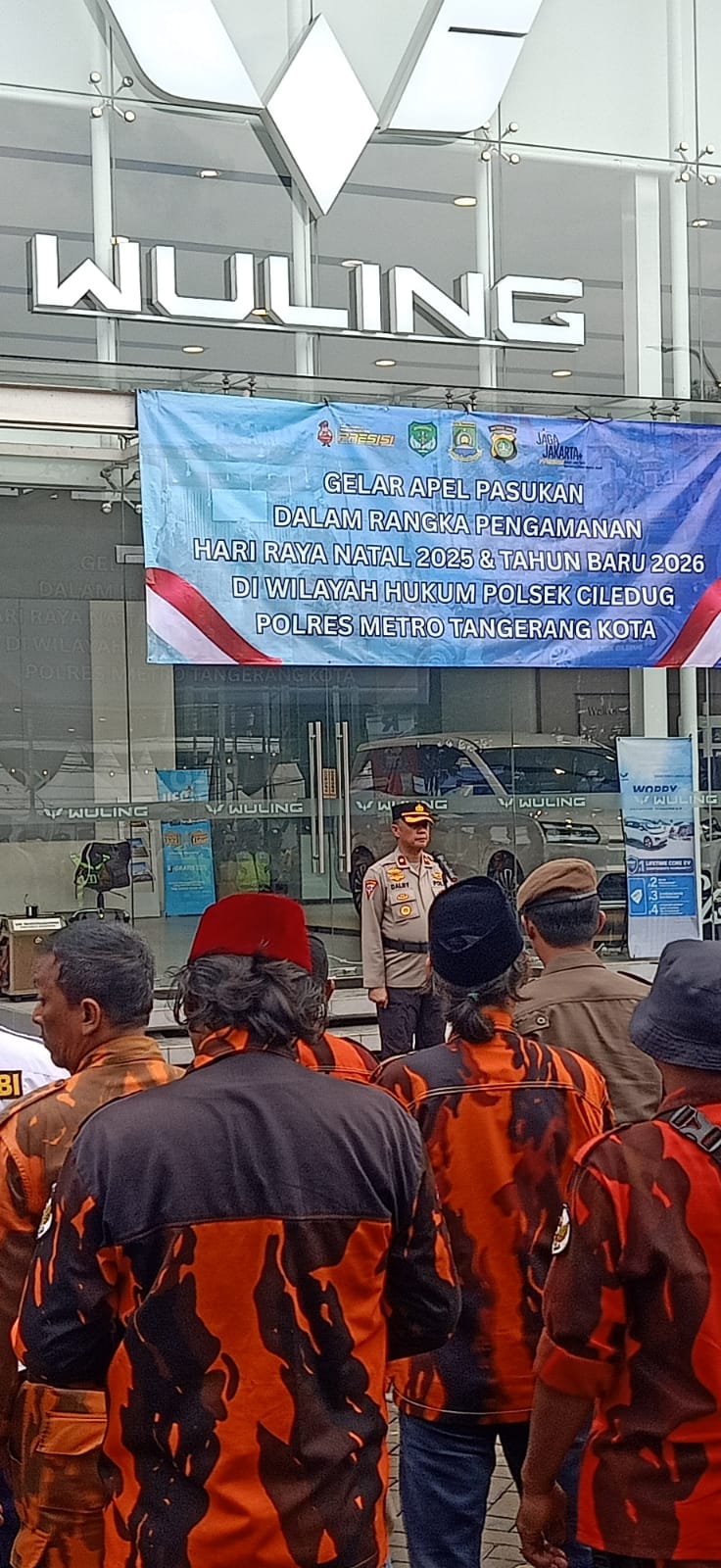 Pancanews.com /Tangerang-Dalam rangka memastikan kesiapan pengamanan Perayaan Natal 2025 dan Tahun Baru 2026, Polsek Ciledug melaksanakan kegiatan Apel Gelar Pasukan Bersama Tiga Pilar dan Aliansi Organisasi Masyarakat seperti Pemuda Pancasila Kec Ciledug dan Kec Karang Tengah pada Rabu, 31 Desember 2025, pukul 16.00 WIB s/d selesai, bertempat di Halaman Showroom Wuling Arista Ciledug jl.Hos Cokroaminoto no 59 Kel.Sudimara timur Kec.Ciledug Kota Tangerang