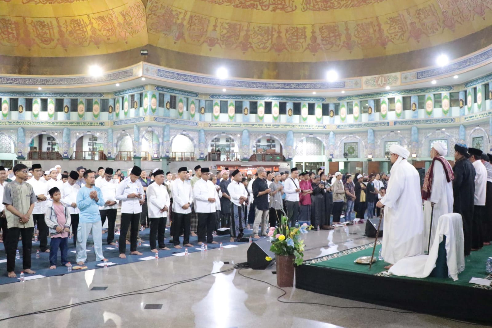 Wakil Wali Kota Tangerang, H. Maryono Hasan, bersama masyarakat dan jajaran Pemerintah Kota (Pemkot) Tangerang mengikuti kegiatan Muhasabah, Zikir, dan Salawat Menyambut Tahun Baru 2026 yang digelar di Masjid Raya Al-A’zhom, Kota Tangerang, Rabu malam (31/12/2025)