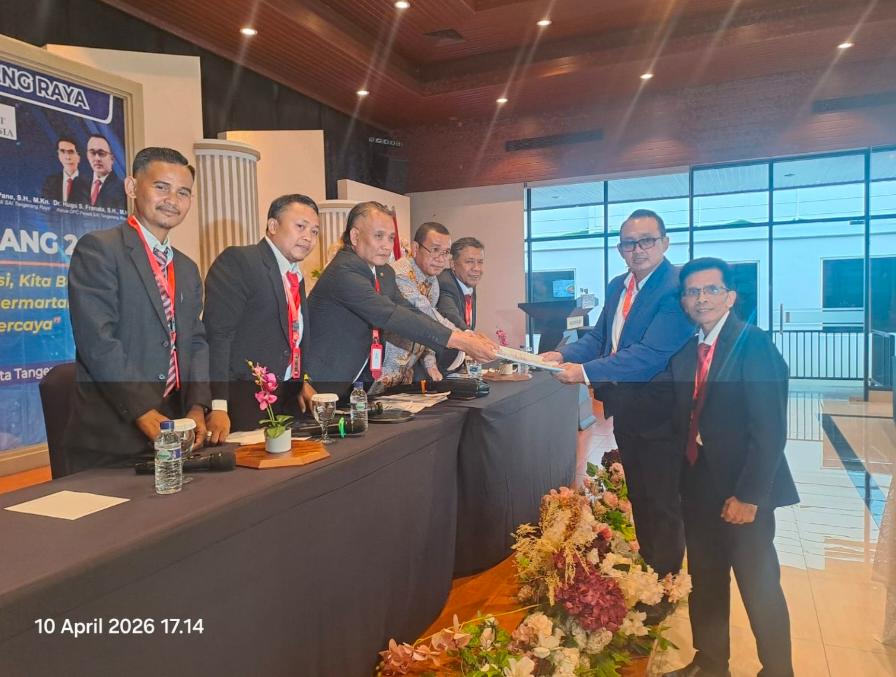pancaNews.com/ TANGERANG — Musyawarah Cabang (Muscab) Perhimpunan Advokat Indonesia Suara Advokat Indonesia (PERADI SAI) Tangerang Raya menetapkan Hugo S. Franata sebagai Ketua Dewan Pimpinan Cabang (DPC) PERADI SAI Tangerang Raya untuk masa bakti 2026–2030. Penetapan tersebut dilakukan secara aklamasi setelah forum musyawarah menyepakati hanya terdapat satu calon yang memenuhi syarat pencalonan, Jumat (10/4/2026).