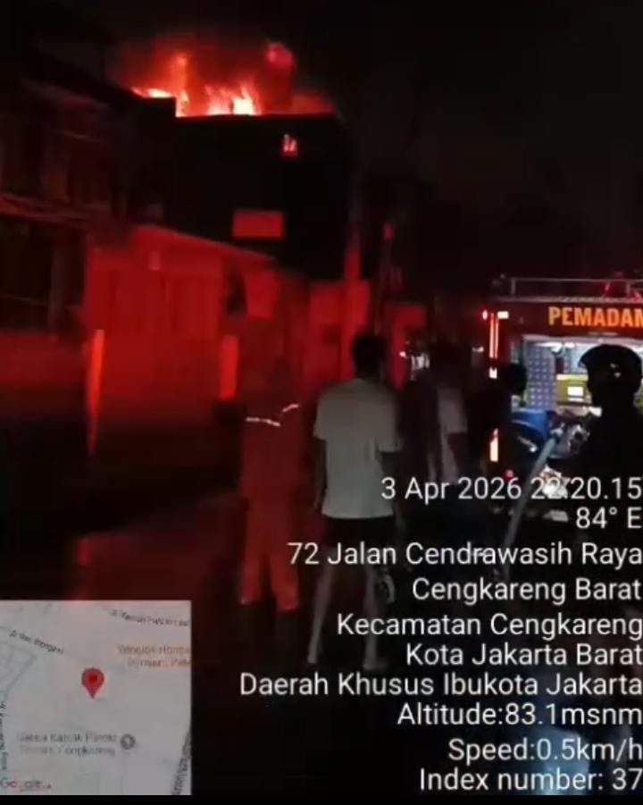 pancaNews.com/ JAKARTA – Sebuah gudang penyimpanan sparepart motor di Jalan Cendrawasih Raya, Kecamatan Cengkareng, Jakarta Barat, dilanda kebakaran pada Jumat malam, 3 April 2026. Kejadian ini terjadi sekitar pukul 21.30 WIB dan sempat membuat warga sekitar panik.