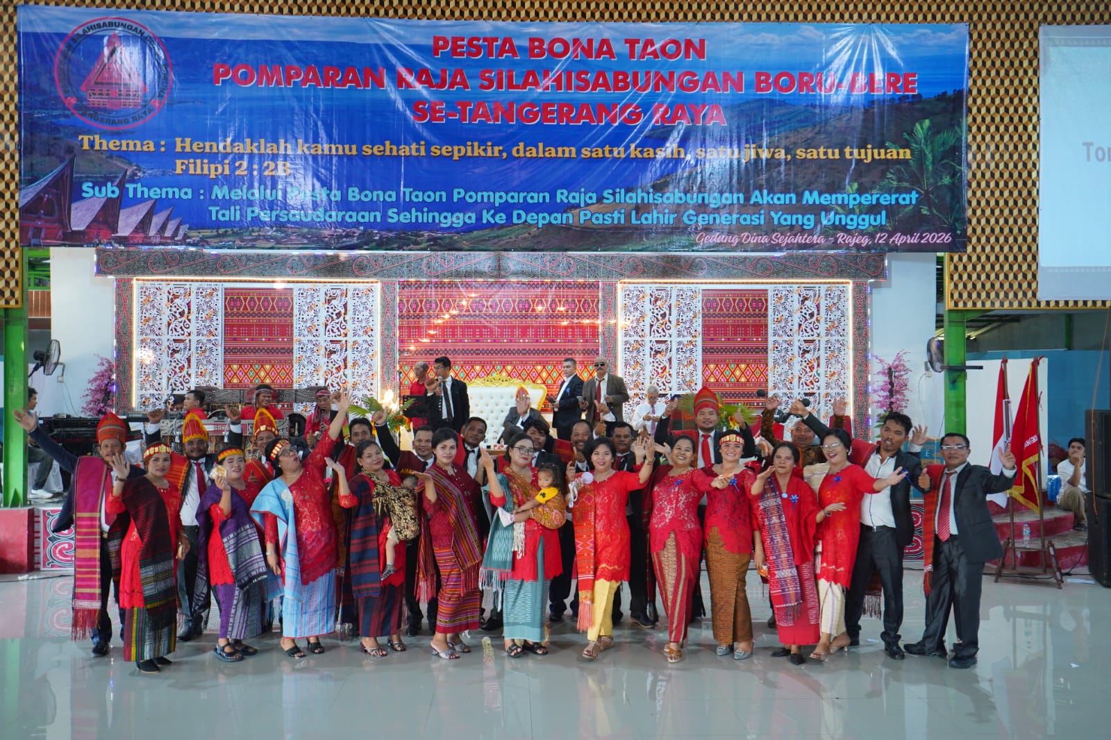 pancaNews.com/ RAJEG, TANGERANG – Suasana penuh kekeluargaan, sukacita, dan kearifan budaya menyelimuti Gedung Dina Sejahtera, Kecamatan Rajeg, pada Minggu (12/04/2026). Ribuan keturunan (Pomparan) Raja Silahisabungan yang tergabung dalam Punguan Raja Silahisabungan wilayah Tangerang Raya berkumpul memeriahkan acara akbar Pesta Bonataon 2026.